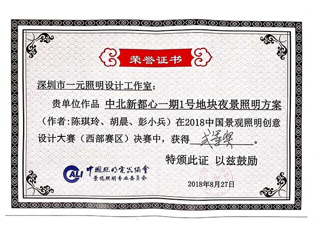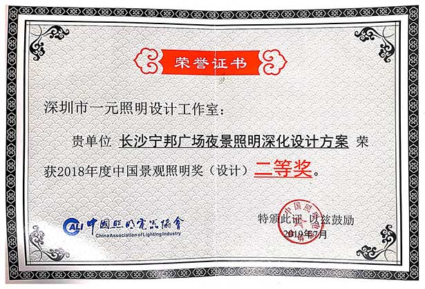 獲2018年中國景觀照明創意設計大賽二等獎